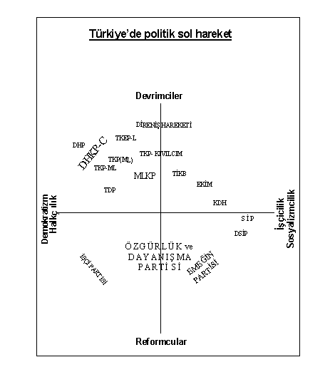 Türkiye sol hareketinde sosyalizmciliği / işçiciliği temsil eden politik yapıların kapladığı alan hayli genişlemiştir. Emeğin Partisi, bütün gövdesiyle devrimci-olmayan bir işçiciliği temsil eden önemli bir ağırlık teşkil ediyor. SİP ve DSİP, söz konusu yönelimi değişik derece ve şekillenmelerle temsil ediyor. ÖDP içinde güçlü sayılabilecek bir sosyalizmci akım var. Diğer yandan, devrimci sosyalizmcilik / işçicilik, KDH’den başlayarak Ekim’e ve TİKB’ye kadar uzanan bir alanda varlığını duyurmaktadır.